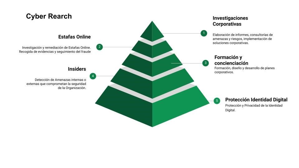 Ciberinvestigaciones de distinta naturaleza, corporativa, estafas online, campañas correos maliciosos, insiders, etc. Disponemos de un equipo multidisciplinar compuestos por ingenieros informáticos, analistas de inteligencia, criminólogos, detectives que siguiendo el ciclo de inteligencia dan respuesta a diferentes casos.