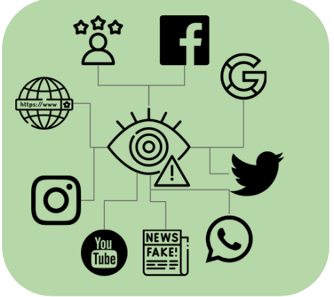 - Fake News: Las noticias falsas, “fake news” son un tipo de bulo que consiste en un contenido pseudoperiodístico difundido a través de portales de noticias, prensa escrita, radio, televisión y redes sociales y cuyo objetivo es la desinformación.